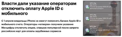 РБК 30 марта: Власти дали указание операторам отключить оплату Apple ID с мобильного. РБК 1 апреля: Россияне перевели на счета Apple 4 триллиона рублей за 2 дня. В рублях в российском App Store, кст