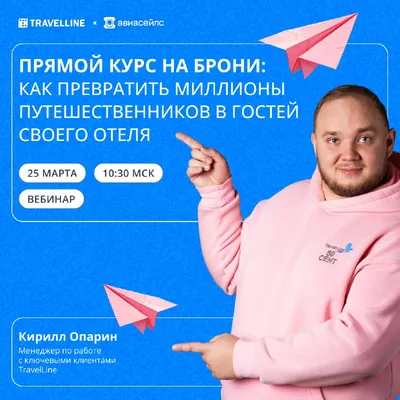Ждем на вебинаре с Авиасейлс 👋 В среду, 25 марта, 10:30 мск обсудим, как получать больше прямых броней с помощью Авиасейлс. С 1 апреля Авиасейлс начнет работать с модулем TravelLine как метапоиско