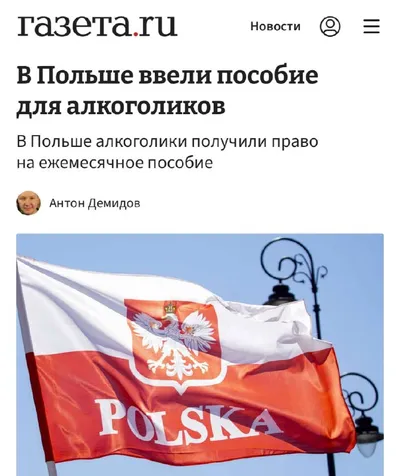 Алкоголикам ежемесячно будут платить по 44 тысяч рублей в качестве пособия — такие меры официально ввели в Польше. Право появилось у всех людей с алкогольной зависимостью. Для выплат нужно доказать,