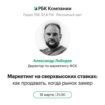 ⚡️ Маркетинг на сверхвысоких ставках: как продавать, когда рынок замер 🎙 Сегодня в 21:00 на Радио РБК в программе «Рекламный щит» — Александр Лебедев, директор департамента маркетинга и рекламы ГК Ф