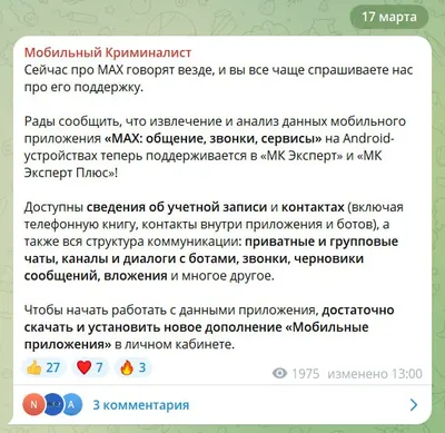 MAX взломан, теперь официально. Об этом сообщили Криминалисты из МКО Система. Их новый софт может извлечь контакты, приватные и общие чаты, каналы, диалоги с ботами, черновики сообщений, вложения, по