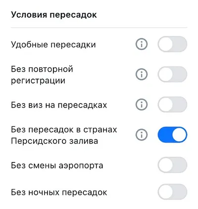 🎫 Широко известный среди путешественников российский поисковик дешёвых перелётов добавил фильтр, с помощью которого из результатов поиска можно исключить рейсы с пересадками в странах Ближнего Восток
