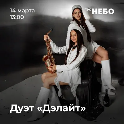 Выходной день под звуки саксофона 🎷 14 марта в 13:00 на главной сцене ТРК «НЕБО» для вас выступит музыкальный дуэт «Дэлайт». Каждое выступление дуэта «Дэлайт» — шоу, где музыка, стиль и энергия сл