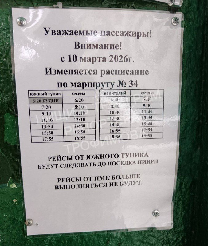«Андрей, доброго дня! Обрадуй жителей. С 10-го марта 34-й больше не будет ходить от (до) Прицеграда. За последнее время нас лишились маршруток 25 и 64, последнего рейса автобуса 30. Да и первый рейс