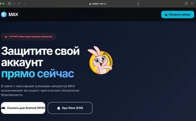 Добрались и до MAX. Фишинговый сайт под видом срочного обновления мессенджера MAX можно увидеть на домене UPDATE-MAX.RU. На сайте сообщается, что из-за якобы массовых взломов аккаунтов MAX требуется