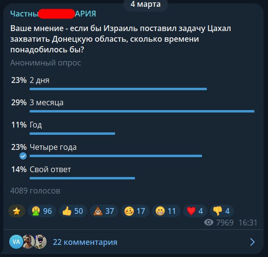 Друзья, подскажите, сколько лет уже ЦАХАЛ берёт Газу, которая в 600 раз меньше Донецкой области и в 5 раз меньше Мариуполя?