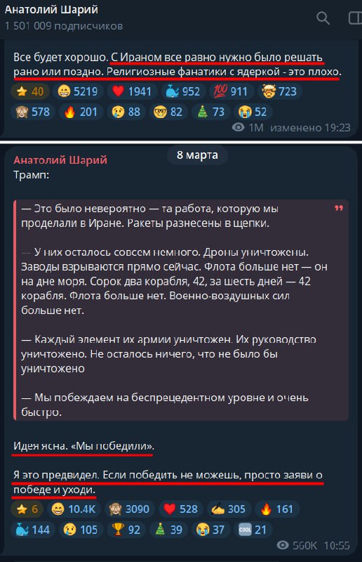 ⚡️Военная операция в Иране будет продолжаться до тех пор, пока цели не будут достигнуты. Мы хотели закончить всё за 3-4 недели, но операция продлится дольше, — Трамп Что-то напоминает