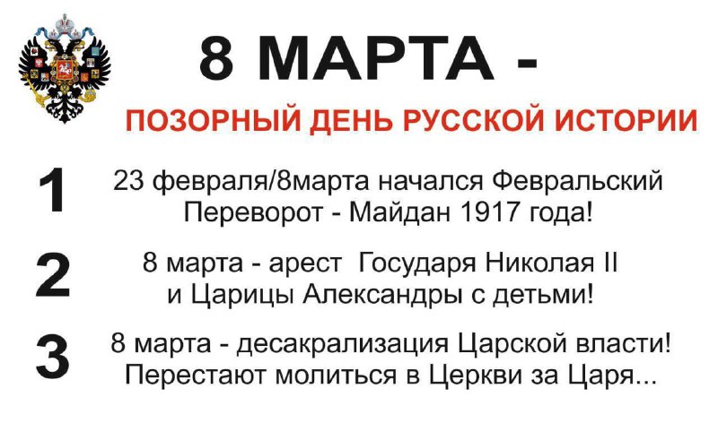15 марта - день отречения России от Царя. 109 лет Вавилонского плена. Чёрный День России. В этот день, в результате государственного переворота был насильственно отрешён от власти Государь Император