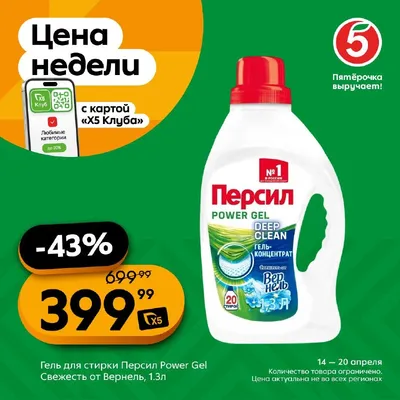 На случай, если вы не справитесь с желанием поваляться на молодой травке здесь и сейчас. 🧼 Персил Power Gel — 399,99 рублей (-43%). «Пятёрочка» выручает! Все скидки на 14–20 апреля здесь. 😀 Мы в