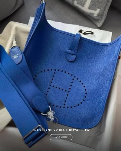 1. Evelyne 29 Blue Royal PHW 2. Evelyne 29 Neo PHW 3. Evelyne 29 Etoupe GHW 4. Evelyne 29 Noir PHW 5. Evelyne 29 Cuivre PHW 6. Evelyne 29 Vert Cypres GHW