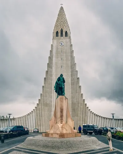 🌎Хадльгримскиркья — символ Рейкьявика Винтажный постер в тёплой гамме передаёт силу и строгость одного из самых узнаваемых зданий Исландии. Архитектура церкви вдохновлена вулканическими базальтовыми
