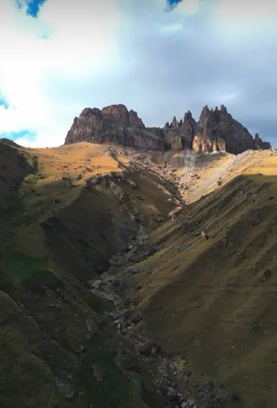 🌍 Величественная вершина Кавказа, Науджидза простирается почти на три тысячи метров над уровнем моря. Её суровые склоны и остроконечные пики создают драматичный пейзаж, где природа будто застыла во в
