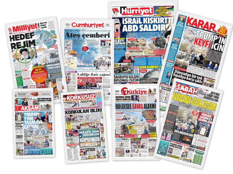 Заголовки турецких газет сегодня Hürriyet — «Израиль спровоцировал, США атаковали» (İSRAİL KIŞKIRTTI ABD SALDIRDI) Sabah — «Резня детей в Рамадан» (RAMAZANDA ÇOCUK KATLİAMI) Cumhuriyet — «Огненно