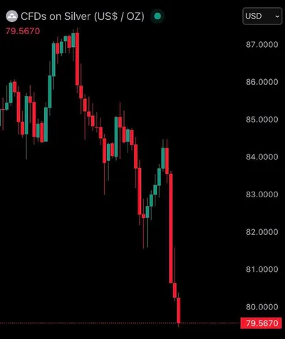 Серебро упало ниже 80 долл. за унцию, снизившись сегодня на 5%.