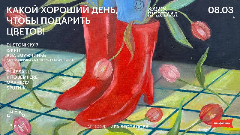 🤩🪩дарим ЧЕТЫРЕ БИЛЕТА на праздник весны и цветов от ДИСКО КЛУБА 8 марта <<< > подписаться на ТусаНаТусе > подписаться на ДИСКО КЛУБ > Участвую! > результат 7 марта 18:00 > 2 победителя по 2 билета
