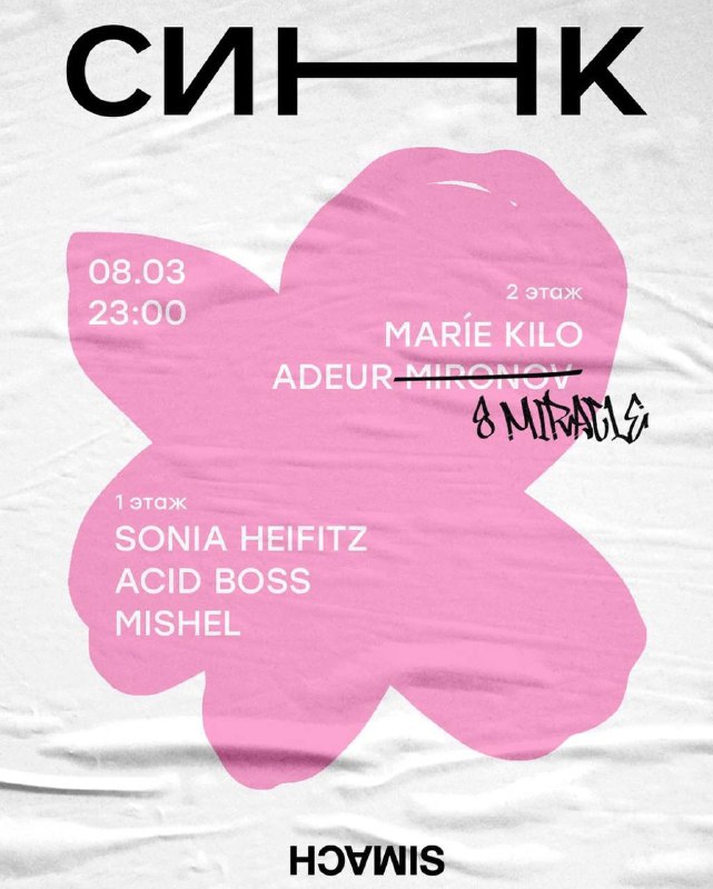 >>> праздничная туса с вечерней частью, фри входом и welcome-drink🌷 завтра промокоманда SYNC делает тусу в SIMACH в двух частях: с 19 вечера — подарок от Дениса Симачёва, живой джаз-бэнд и спешл ко