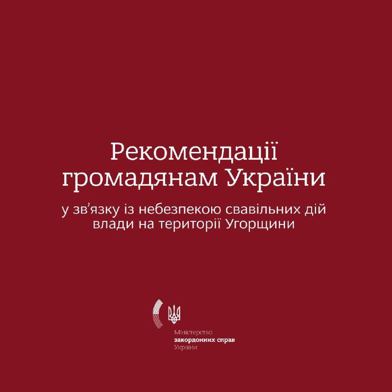 ❗️Украинцев предупреждают об опасности пребывания в Венгрии, — МИД Министерство иностранных дел рекомендует гражданам Украины воздержаться от поездок в Венгрию в связи с невозможностью гарантировать