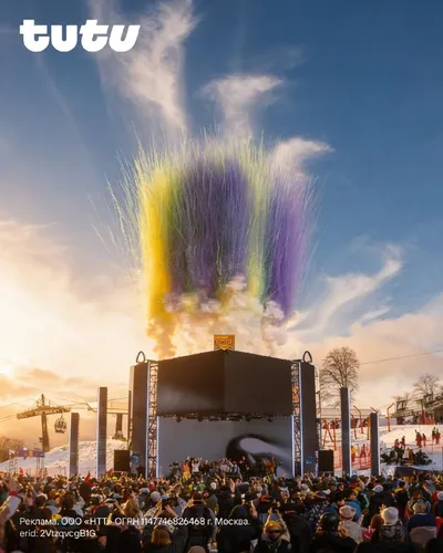 Примчались на New Star Camp — и бесплатно поднимаем вас в горы каждый день 🚂💜 Главный спортивно-музыкальный фестиваль страны сейчас в самом разгаре! Крутые горнолыжные трассы, громкие тусовки под