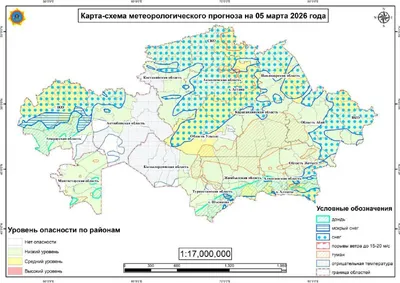 Прогноз погоды на 1 марта 📌 Астана В столице ожидается холодная, преимущественно без осадков погода. Температура: днем −13…−15 °C, ночью −28…−30 °C. Переменная облачность, ветер 5–10 м/с, осадки мал