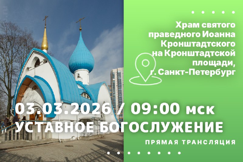 3 марта смотрите на телеканале "Союз" прямую трансляцию уставного богослужения из храма святого праведного Иоанна Кронштадтского на Кронштадтской площади города Санкт-Петербурга. -- Сейчас строится хр