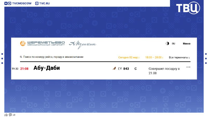 Самолет из ОАЭ приземлился в московском Шереметьево, следует из данных аэропорта Это первый рейс с момента закрытия воздушного пространства на Ближнем Востоке. 🟦 Подписаться на «Город новостей» в