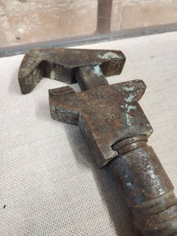 Старинный ключ подарил местный житель Музею гвоздарей под Тверью Геннадий Мандрусов из села Васильевское подарил музею отлично сохранившийся образец разводного «английского» ключа Hemis and Call. Он