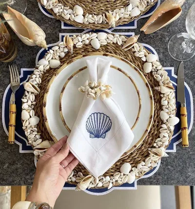 Еще несколько вдохновляющих идей в морской тематике 🌊 Здесь все внимание приковано к деталям: ракушки, гирлянда из раковин устриц, жемчужные кольца для салфеток, оттенки текстиля и стекла, тематичес