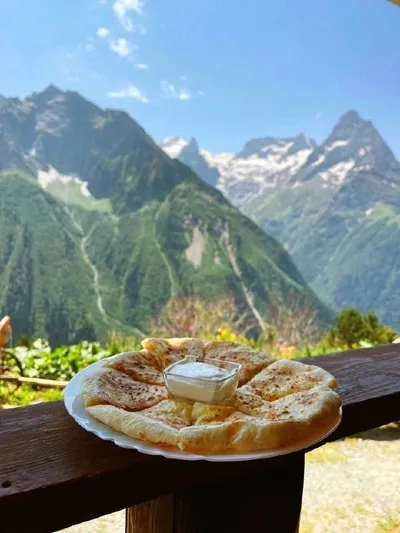 А ведь настоящая весна уже не за горами, она в горах! Горячий хычинчик и санжезаваренный чай: все что нужно для настроения☕️🎈 Кому такой завтрак с видом на горы? — ❤️