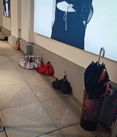 Место для зонта Привет! Такой у нас обычай: заходишь в магазин, кафе или в ресторан - оставь зонтик у входа. Так удобно и сотрудникам, и посетителям. Конечно, одной корзины не хватает в дождливые дн