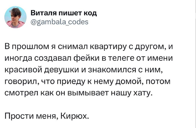 Юмор и развлеченияТоп контент из твиттера (𝕏) Канал для людей, которым надоели однообразные скучные мемы. Менеджер по рекламе: @redcat Прайс: t.me/redcatmedia/66 Мы на бирже: https://telega.in/c/twitter_ok РКН: https://clck.ru/3FKda4