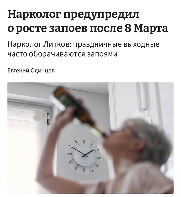 Россияне могут массово уйти в запой после 8 марта, предупреждают наркологи. Специалисты советуют не начинать день с алкоголя, ограничивать дозу и не снимать стресс спиртным — особенно зависимым людям