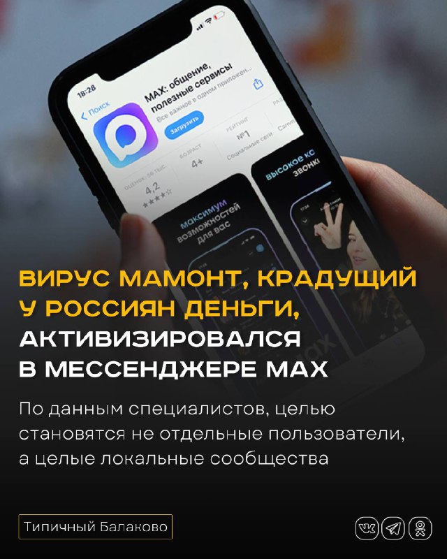 Вирус Мамонт, крадущий у россиян деньги, активизировался в мессенджере MAX В мессенджере MAX зафиксирован резкий рост распространения Android-трояна «Мамонт». Активность вредоносного ПО совпала с мас