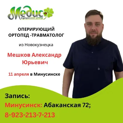 ❗️Боли в суставах, спине или после травмы? Не откладывайте консультацию специалиста В «МЕДИС» (Минусинск) ведёт приём оперирующий ортопед-травматолог Мешков Александр Юрьевич (г. Новокузнецк) - стаж