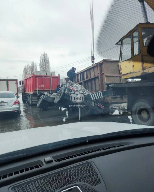🚚 На ул. Илюшина перевернулся прицеп, из-за чего образовалась пробка Предположительно, опрокидывание произошло из-за ямы на дороге. 🦅 Подписаться Т-Воронеж ➡️ Поделиться новостью ➡️ Мы в MAX