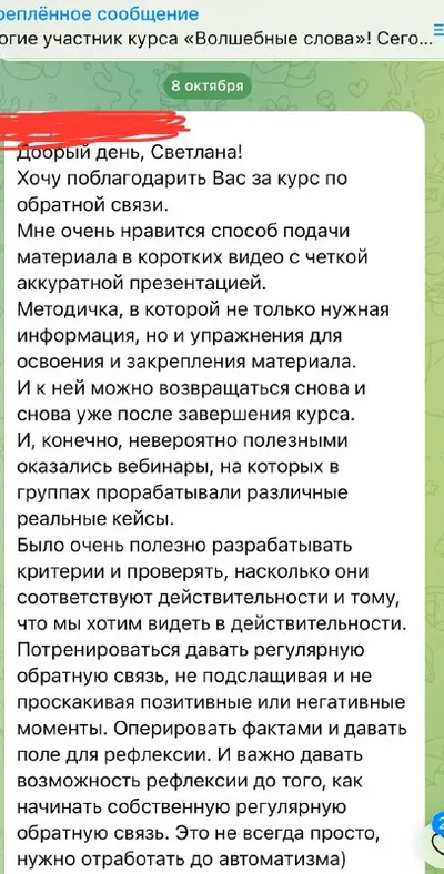 А тем временем идет набор на онлайн курс «Волшебные слова или как дать обратную связь, которая мотивирует, развивает, вдохновляет». С прошлого потока курс дополнен бонусным уроком про формирующее оц