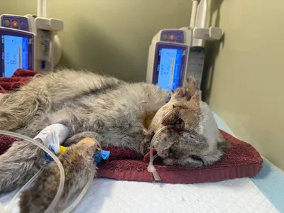 Хирург посмотрел, перелом сложный, сустава челюсти, это операции часа на 2, к такому пока кот не готов. По плану на сегодня: - переливаем - стома - уретральный катетер - стабилизируем/кормим дня 3-4