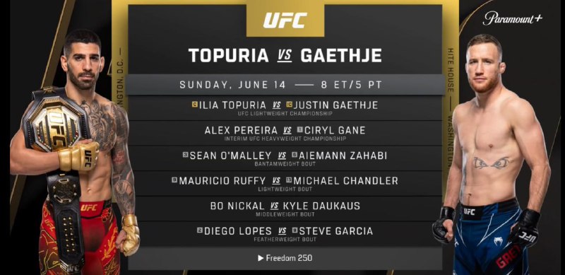 ⚡️А вот и кард Белого дома – без Ислама Махачева 🇷🇺Предсказуемо, российских бойцов там не будет. У Топурии вместо Махачева Гэтжи, у О’Мэлли вместо Петра Яна Захаби. Размером боев это событие на бум