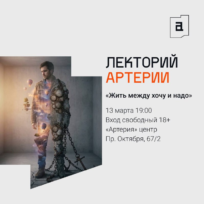 Лекторий Артерии 🗣️ «Жить между хочу и надо» Ты часто ощущаешь внутренний конфликт между тем, что хочется, и тем, что нужно? Вроде бы хочешь свободы, радости и собственных желаний, а с другой — чу