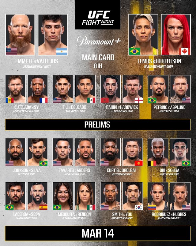 📆 #UFC326 • 8 марта в 01:00 (мск) • Главный кард в 05:00 (мск) Забирай фрибет 2000р ↗️ Отличная возможность добавить азарта и эмоций к просмотру боёв! Увеличивайте шансы на выигрыш и наслаждайтесь