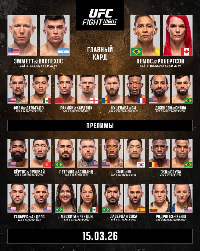 🚂💨💨💨 Следующая остановка ... 📆 #UFCVegas114 • 15 марта в 00:00 (мск) • Главный кард в 03:00 (мск) 🟢🟢🟢🟢🟢 5000р на первый депозит 💪 UFC Fight Night