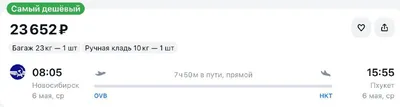 Улететь из Новосибирска в 🇹🇭Таиланд ⚡ВЫЛЕТ В МАЕ⚡ Новосибирск — Пхукет 🇷🇺6 мая 🎟️ 23652₽ *цена актуальна на момент публикации ❄️ УЛЕТЕТЬ НОВОСИБИРСК