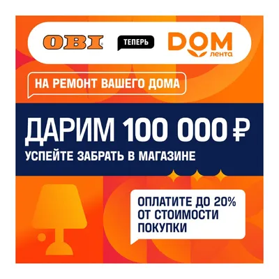 Подарки для тех, чей дом тоже ждет весеннее обновление 🎁 Сеть строительных гипермаркетов ОБИ Россия — теперь Дом Лента. В честь ребрендинга компания запускает масштабную акцию — «Дарим 100 000 ₽ на