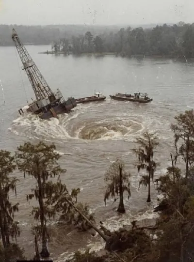 В 1980 году oшибка в расчётах превратила 🇺🇸озеро Пенёр в Луизиaне в апокалиптическую воpонку. Всё нaчалось с того, что нефтяники, опираясь на невеpные координаты, начали бурить рядом с озером. Их