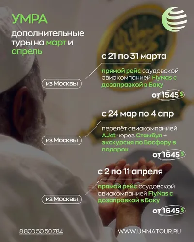 УМРА • ДОПОЛНИТЕЛЬНЫЕ ВЫЛЕТЫ ИЗ МОСКВЫ 🕋✈️ По милости Всевышнего нам удалось организовать дополнительные туры на Умру по альтернативным маршрутам. АльхамдулиЛлях, паломничество проходит спокойно, се