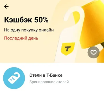 Сегодня в «Кэшбеке дня» Т-банк предлагает возврат 50% (максимум 3000 рублей) за бронирование отелей на сайте банка или в приложении. Предложение индивидуальное, проверяйте наличие в мобильном приложен