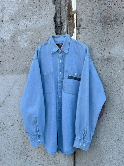 #наличие #рубашки HARLEY DAVIDSON DENIM SHIRT VINTAGE 00'S Винтаж из 2000-х годов. Шикарная рубашка из светлого денима от американского бренда. Плотная вышивка на груди. Идеальный 100% хлопок. Нагру