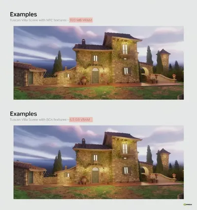 ⚡️Nvidia анонсировала Neural Texture Compression (NTC) — технологию сжатия текстур через ИИ В демо память снизилась с 6,5 ГБ до 970 МБ (почти в 7 раз) без потери качества. Не требует мощного железа,