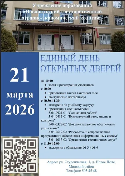 🔥🔥Администрация учреждения образования «Новопольский государственный аграрно-экономический колледж» приглашает принять участие в профориентационном мероприятии "Единый день открытых дверей", которое