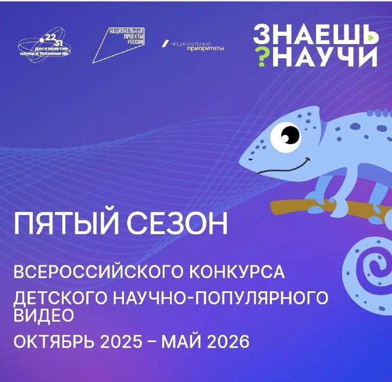 🤔 ЗНАЕШЬ? НАУЧИ! Приглашаем школьников с 1 по 11 класс заявить о себе как о будущих молодых учёных и проявить таланты научно-популярных блогеров в рамках Всероссийского конкурса научно-популярного в