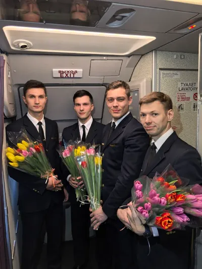 Сегодня, 8 марта, на рейсе U6-403 Екатеринбург – Калининград за комфорт и хорошее настроение прекрасных дам отвечал исключительно сильный пол – от пилотов в кабине до бортпроводников в салоне. Ещё до